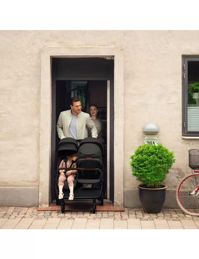 Nezávislá sezení - sezení a stříšky jsou zcela nezávislé, což umožňuje individuální nastavení pro každé z dvojčat zvlášť, podle aktuálních potřeb. Na širší sezení lze bez adaptéru nasadit autosedačku řady Nuna PIPA™, díky čemuž se z kočárku stává praktický cestovní.